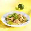 Put the pasta in boiling salted water and cook for 2-3 minutes. Pour onto a sieve, rinse under cold water and drain well. Clean and wash spring onions and pak-choi. Cut spring onions diagonally into pieces, Pak-choi into wide strips.