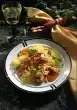 Fry again briefly and season to taste with soy sauce and salt. Serve garnished with cress blossoms and Asian chives.