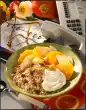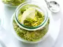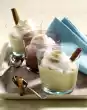 Pour 1/4 l of milk into a high mixing bowl. Stir in sauce powder. Whisk vigorously for about 1 minute. Mix quark with vanillin sugar and 2 tablespoons sugar. Peel banana, cut into thin slices and sprinkle with lemon juice. Stir into the quark