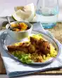Heat the fat in portions in a small coated pan (approx. 16 cm Ø). Bake 8 thin crêpes from the dough one after the other. Keep warm if necessary. Spread the crêpes with banana quark and fold them in. Serve with chocolate sauce