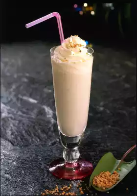 Peel the bananas, cut them into pieces and sprinkle with some lemon juice. Puree the bananas, 8 tablespoons of cream, sugar and milk in a mixer. Beat the rest of the cream and vanilla sugar with the whisks of the hand mixer until stiff. Pour banana milk into four glasses. Fill cream into a piping bag with star spout. Place a cream topping on the banana milk and garnish with brittle crumbles