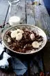 Roast the nuts in a pan without fat. Take them out, let them cool down a bit and chop them roughly. Peel papaya, cut in half and remove seeds. Cut the flesh into cubes. Sort raspberries.