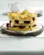 Spread the rest of the pudding on top. Cover with remaining bananas. Put the cream that has been put aside as a blob on top. Sprinkle with brittle.
