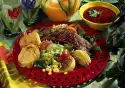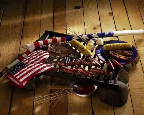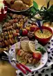 Stir in onion, garlic and ginger. Season to taste with salt. Wash the meat, dab dry. Put Marsh-mallows on wooden skewers. Drained corn for about 10 minutes, ribs 3-5 minutes (always spreading the sauce over them) from each side, grill steaks for 5-8 minutes.