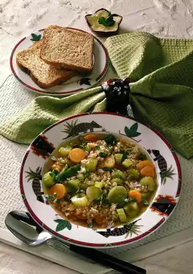 Add porcini mushrooms with the soaking water. Stir in stock cubes. Cover and cook for about 15 minutes. In the meantime clean and wash the vegetables. Peel carrots. Cut the vegetables into thin slices, add to the stock and cook again for about 10 minutes.