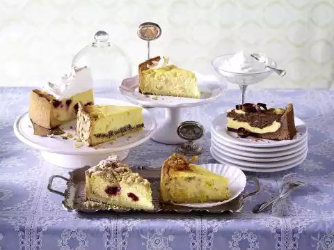 Curd mixture Preparation: Separate the eggs. Beat egg white and salt until stiff. Put quark in a bowl. Stir in egg yolks, milk, lemon peel and juice, sugar, pudding and sauce powder. Carefully fold in the beaten egg white