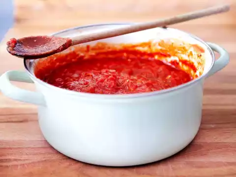 Bring to the boil and simmer for about 30-40 minutes until slightly thick (be careful - the sauce will splash!).