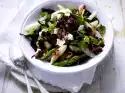 Remove the finished dumplings with a skimmer, drain briefly on kitchen paper and arrange on the salad.