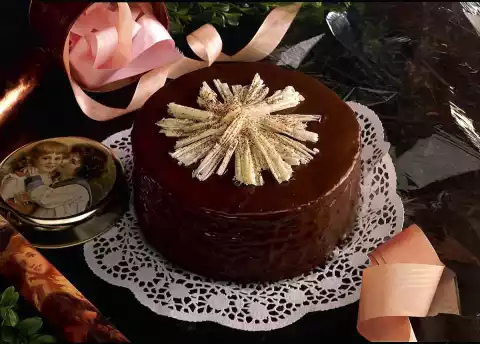 Use a spatula to scrape the rolls and garnish the cake with them. Dust with cocoa. Makes about 16 pieces.