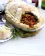 Wash parsley, shake dry, pluck leaves from the stalks and chop finely. Melt butter in a pan. Add potatoes and parsley and toss in the fat. Arrange goulash and potatoes