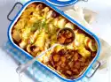 Peel, wash and halve the potatoes and cook in boiling salted water for about 20 minutes. Clean, wash and roughly dice the peppers and add them to the goulash about 15 minutes before the end of the cooking time. Season with salt, pepper and paprika powder and refine with mustard and cream. Stir starch and 2 tbsp. water until smooth and thicken goulash. Add the remaining onion rings to the goulash about 5 minutes before the end of the cooking time.