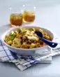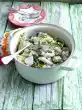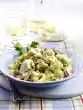Wash lemon hot, grate dry and grate peel. Halve the lemon and squeeze one half. Wash basil, dab dry and cut leaves, except for some for garnishing, from the stems and cut into strips.