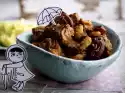 Arrange bean mince ragout on plates. Possibly garnish with savory. Serve with rice