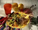Rinse and drain the beans. Drain tuna and olives. Cut the tuna into pieces. Peel and halve the onion, cut into slices and fry in 2 tablespoons of hot oil over medium heat until golden brown.
