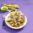 Cook the broad beans in boiling salted water for about 20 minutes without defrosting. Clean, wash and possibly halve the green beans. Also cook in boiling salted water for about 15 minutes. Drain the beans. In the meantime peel onions and cut them into rings.