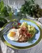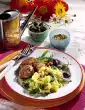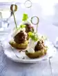 Simmer the béchamel for about 15 minutes, stirring occasionally. Cut off asparagus tips about 3 cm long. Cut remaining asparagus into short pieces. Bring the béchamel to the boil, stir in crab butter and season to taste. Heat up the crabs, asparagus and potatoes for about 5 minutes. Arrange and garnish with chervil