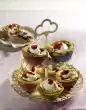 Spread almond and honey mixture on the muffins. Bake in the preheated oven (electric cooker: 175 °C/ convection oven: 150 °C/ gas: level 2) for 20-25 minutes (test with sticks!). Remove the muffins and let them cool down. Whip the sour cream with the whisk of the hand mixer for about 2 minutes. Stir in cold pudding and chill for about 20 minutes until the cream is firm. Cut off a lid from each muffin. Put 1-2 tablespoons of cream on each muffin and put the lid on top. Dust the muffins with icing sugar