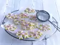 Place a slice of bacon on the edge of each fillet. Tie together with kitchen string. Heat 2-3 tablespoons of oil in a pan and fry the meat for 2-3 minutes on each side. Wash the marjoram, shake dry, put some stalks aside for garnishing.