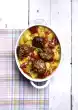Peel garlic and chop very finely. Peel and wash potatoes and cut into very thin slices. Spread potato slices on a tea towel and season with salt and pepper.