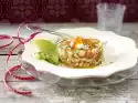 Stir the sauce powder in 1/8 litre water, bring to the boil. Add 100 g cream and bring to the boil, then remove from the heat. Whip butter (less than indicated on the packet) in pieces and fold in truffle butter.
