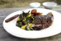 Add the mushrooms and cranberries to the goulash about 5 minutes before the end of the cooking time. Season the goulash to taste again. Serve with spaetzle.