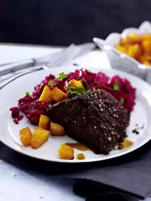 Crush pepper in a mortar. Rub medallions with pepper and set aside in an ovenproof dish for about 30 minutes. Heat clarified butter in a small pot. Pour it over the medallion. Cook in a preheated oven (electric cooker: 80 °C/ convection oven: not suitable °C/ gas: not suitable) for approx. 1 1/2 hours