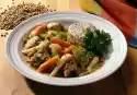 Mix into the meat. Wash and peel the mango and cut the flesh left and right of the core. Dice the flesh. Chop the peanuts. Heat oil in a pan and fry the flesh while stirring vigorously.