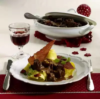 Meanwhile, prepare the pasta in boiling salted water according to the instructions on the packet. Mix starch with a little cold water. Add liquid cream-chocolate mixture, chilli and cinnamon to the ragout, thicken with mixed starch and simmer for another 5 minutes.