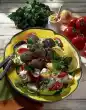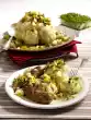 Season to taste with salt and nutmeg. Remove the roulades from the sauce and keep warm. Pass the sauce through a sieve and bring to the boil. Mix the starch with some water until smooth and thicken the sauce with it. Season to taste with salt and pepper. Melt 2 tablespoons of butter in a saucepan. Arrange roulades with sauce, puree and vegetables. Drizzle the puree with butter. Garnish with marjoram