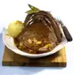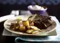 Arrange cucumber salad in a radicchio leaf and meat on plates. Drizzle meat with sauce and add the rest of the sauce. Rice tastes good with it.