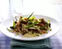 Add sprouts, garlic and ginger and cook for about 2 minutes. Season to taste with soy sauce, pepper and sugar. Fold in nuts. Arrange meat and vegetables on plates.