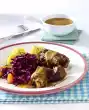 Peel, wash and quarter the potatoes. Cook potatoes in salted water for about 20 minutes until soft. Clean the pointed cabbage and cut into thin strips. Knead 1 pinch of salt and the pointed cabbage and let it stand for about 15 minutes