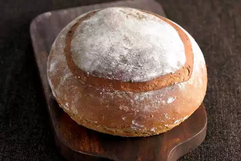 Knead the dough on a floured work surface, form it into a round loaf and place it on a baking tray covered with baking paper. Make a circular incision on the surface about 3 cm from the edge, cover and leave to rise for another 30 minutes.