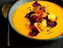 Heat the oil in a large pot. Sauté the onion in it until transparent. Fry beetroot, celery and potatoes briefly. Sprinkle with 1 tsp. sugar and caramelise briefly. Season with salt and pepper. Deglaze with 1 1⁄4 l water, stir in broth and bring to the boil.