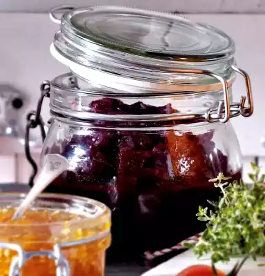 Roughly chop the cherries. Crush coriander seeds. Heat olive oil in a pot. Steam onions for about 8 minutes while stirring. Add beetroot, apples and cherries and steam briefly. Add red wine vinegar, sugar, honey, salt, pepper and coriander, bring to the boil and simmer covered for about 20 minutes.