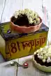 In the meantime, finely crush 2 tablespoons of sugar with 2 drops of food colouring in the universal chopper. Dust the cake with it