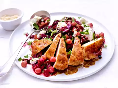 Cut the beetroot into small cubes and sprinkle with balsamic vinegar. Cut apple and gherkins into the same cubes. Dice the onion very finely. Pour everything into a bowl and add the capers (chop the larger ones first).