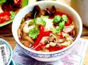 Serve the soup. Garnish with 1 tbsp. buttermilk and herbs. Delicious with baguette.