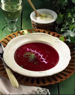 Drain the beetroot, quench with cold water and let it cool down. Peel and roughly dice the tubers. Boil up vegetable stock and apple juice. Add beetroot, heat it up again and puree it with a chopping stick.