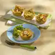 Roll out on a floured work surface to a circle (26 cm Ø) and place in a greased pie mould (24 cm Ø). Prick the pastry base several times with a fork. Layer the vegetables in the mould.