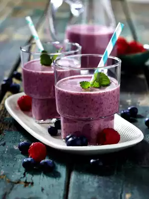 Berries selected. Puree curd, honey, berries, linseed and 300 ml water in a blender. Wash lemon balm, shake dry and pluck leaves from the stalks. Pour drink into glasses and decorate with lemon balm.