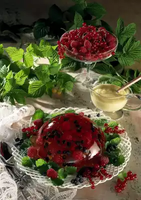 Decorate with lemon balm and the remaining fruit. Wine mousse sauce tastes good with it.