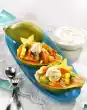 Squeeze the gelatine, dissolve and stir into the grape juice. Rinse a bowl (approx. 1600 ml content) with cold water. Put some fruits aside for garnishing each bowl. Put half of the remaining fruits and juice into the bowl.