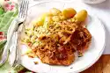 Cut the potatoes into slices. Fry in hot oil for about 10 minutes until golden brown. Season with salt and pepper. Arrange everything.