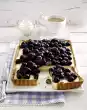 Stir in sugar and vanillin sugar and let it trickle in. Stir in the egg yolk. Sift the flour and baking powder and carefully fold into the egg mixture. Pour the sponge mixture into a piping bag with a perforated spout. Spray a total of 12 oval plates onto a baking tray lined with baking paper. Bake in a preheated oven (electric: 175 °C/ gas: level 2) for 12-15 minutes. Remove baking paper, let dough plates cool down. Cut the pears into slices, cutting out the core. Sort raspberries. Whip the chocolate mint cream until stiff and fill into a piping bag with star-shaped spout. Spray onto 6 dough plates. Spread pear slices and raspberries on top.