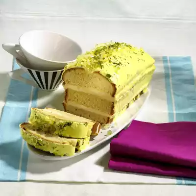Chill for 30 minutes. Chop the candied lemon peel roughly. Wash and dry lime and grate peel finely. Mix 250 icing sugar, 4 tablespoons bitter lemon and food colouring to a glaze. Cover the cake with the icing and sprinkle with candied lemon peel and lemon peel