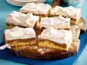 Take the cake out of the oven and let it cool down for 10 minutes. Turn out of the tin and let it cool down completely on a cake rack. For the filling, stir 6 tablespoons of Bitter Lemon with pudding powder and 100 g sugar until smooth. Bring 340 ml Bitter Lemon to the boil. Stir in the pudding powder, bring to the boil again. Place in a bowl, cover with foil and chill. Whip the mascarpone, cream setting agent and 1 tablespoon icing sugar with the whisk of the hand mixer. Fold in the pudding. Divide the cake twice. Spread cream on both cake bases. Place on top of each other and close with the lid.