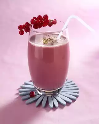 Roast sesame seeds in a pan without fat until golden brown, remove and let cool. Mix currant juice, honey and soured milk. Pour the drink into a glass, sprinkle with sesame seeds and decorate with currant pancakes.