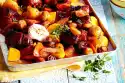 Beat the egg white in a bowl until stiff and fold in the remaining sugar. Slide the beaten egg white onto the egg yolk mixture. Mix flour with starch, cocoa and baking powder and sieve onto the beaten egg white.