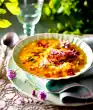 Bind the juice with it. Add the cherries and bring to the boil again. Let the compote cool down. Roughly chop the chocolate. Set aside 1 heaped teaspoon for decoration. Mix mascarpone, sour cream, vanillin sugar and sugar until smooth. Stir in chocolate. Halve the biscuits and soak in kirsch. Layer Stracciatellacreme, soaked biscuits and stewed cherries in high glasses.